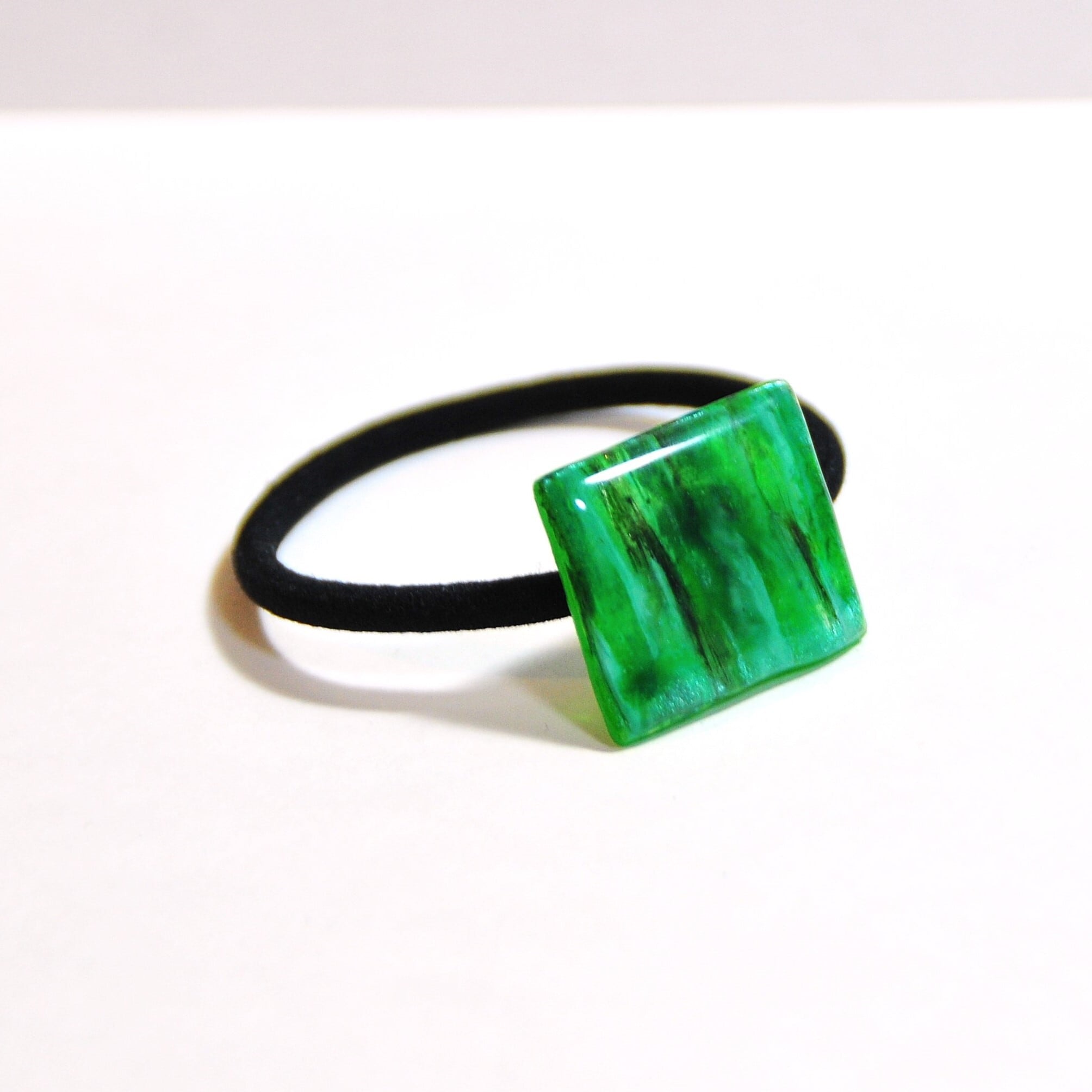 画家が作った絵の具で描いた深緑のヘアゴム「樹林」
