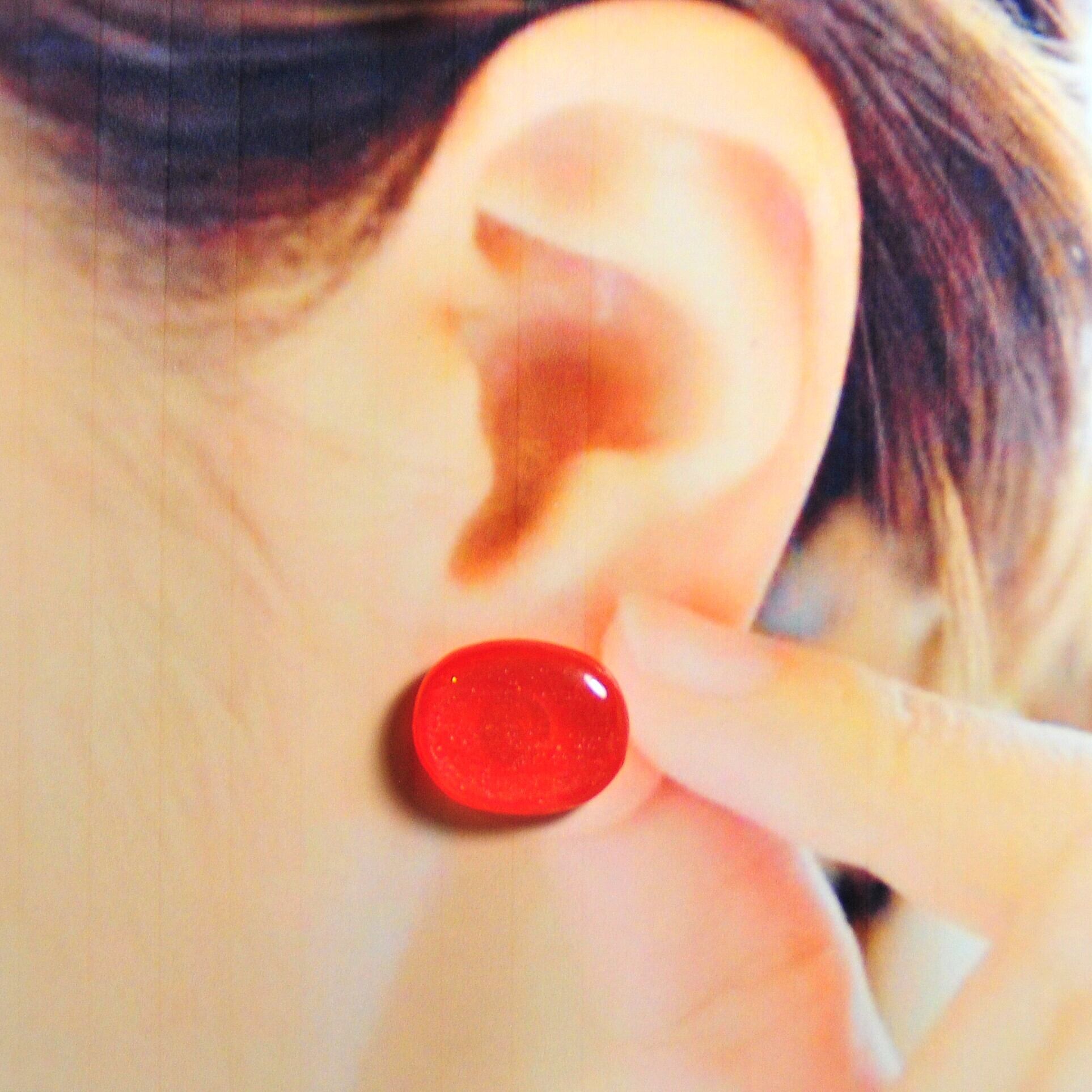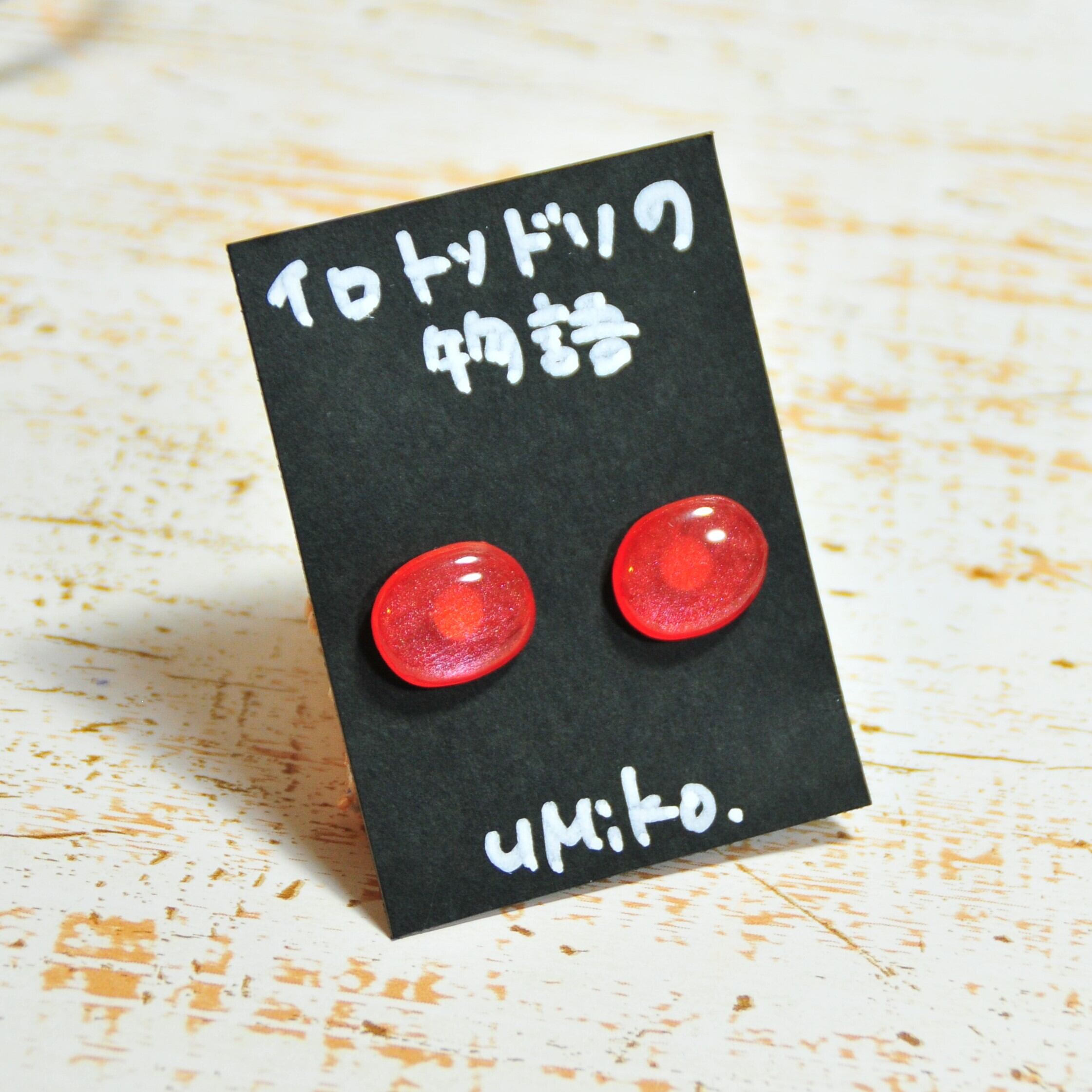 形を作ってからアクリル絵の具を使用して、手描きをして全て手作業にこだわったピアス。